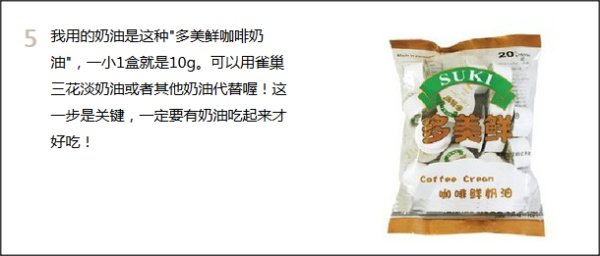 因为没有买到椰浆所以用椰子汁代替了!味道也很赞!美味指数五颗星! 我觉得重点是一定要想办法搞到奶油! 最后我买到咖啡奶油,加了这个奶香很浓!实在是棒优佳!~(≧▽≦)/~