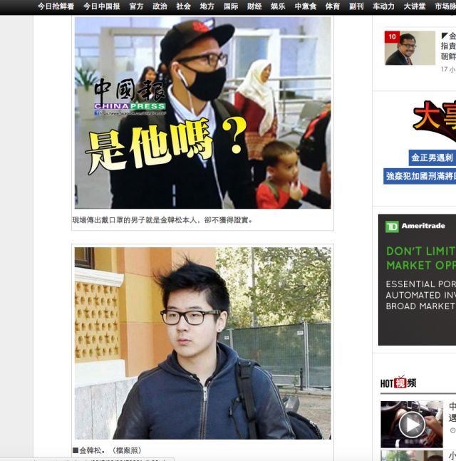 金正男在馬來西亞被疑似朝鮮特工僱用的兩名女子施毒後死亡,金正男被認為僑居在澳門的長子金韓松(Kim Han-sol,也譯作金漢率、金漢秀),2月20日(週一)被傳乘坐亞航AK8321班機,從澳門飛往金正男被下毒的吉隆坡第二國際機場。飛機於7點33分抵達目的地。