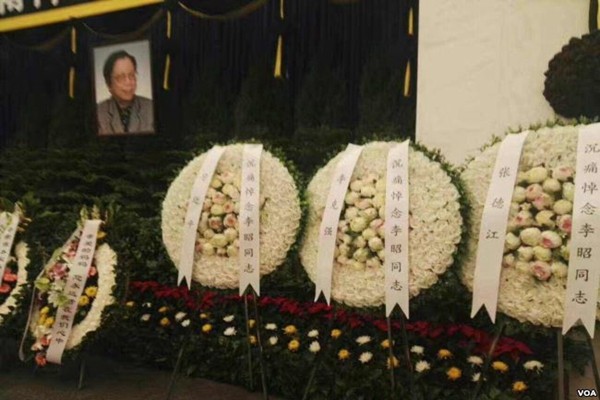 同時,李昭的告別儀式也成了一場考驗。李昭是北京紡織局前負責人,所以她的後事,責成北京市老幹部局辦理。當局嚴控人數和規模,對外發訃告信只發1800份,而獲准參加告別儀式的人都被禁止帶包,禁止拍照,禁帶鮮花花圈等。