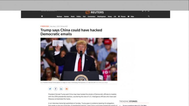 美國總統川普週末表示,通過非法入侵民主黨官員的電子郵件來干預美國大選的,可能是中共。雖然川普沒有給出任何具體證據,但這與美國情報機構提出是俄羅斯干預美國大選的指控大相徑庭。川普曾於去年大選前就指出,中共可能非法入侵他競爭對手的郵件。