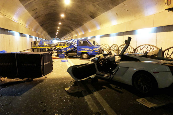 【新!唐!人:北京時間2018年07月08日訊】台北市一名游姓男子7日清晨5時許,駕駛藍寶堅尼LP560行經自強隧道時,疑因加速失控發生車禍,導致2死3傷慘劇。超跑租賃業者形容游男這種「炸隧道」的玩法,意在隧道內聽引擎震撼聲響,但當看到前方有工程車要避開已經來不及,而失控撞上。