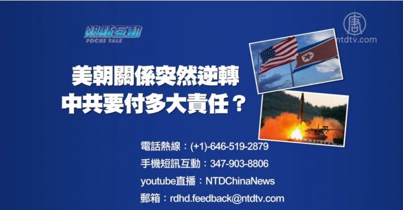 【新!唐!人:2018年08月29日訊】上週五(8/24),美國總統川普在推特中突然宣布取消國務卿蓬佩奧的朝鮮之行。川普稱朝鮮在去核上沒有取得“足夠進展”,並明確表示中國(共)應承擔部份責任。同時川普還稱,要先解決與中共的貿易糾紛,再解決朝鮮問題。而本週二(8/28),美國防部長馬蒂斯宣布,結束美韓軍演暫停狀態。美朝關係似乎突然間出現了逆轉,而朝鮮去核的前景再度陷入迷霧。與此同時,外界關注習近平是否會在9月9日前後訪問朝鮮。 朝鮮去核停滯不前,中共要付多大責任 ?朝核局勢是否又可能回到原點?如何解讀川普要先解決貿易爭端的表態?