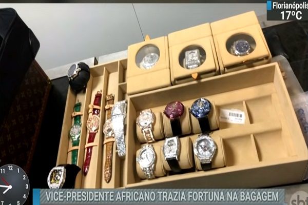 歐必昂(Teodoro Obiang Mang)一行11人14日飛抵聖保羅州坎皮納斯市維拉可波斯(Viracopos)機場,巴西聯警在2件非外交官行李內查獲140萬美元和巴西幣5萬5000元現金,以及價值共約1500萬美元的20只貴重手錶,其中有一只手錶鑲滿鑽石價值就有350萬美元。