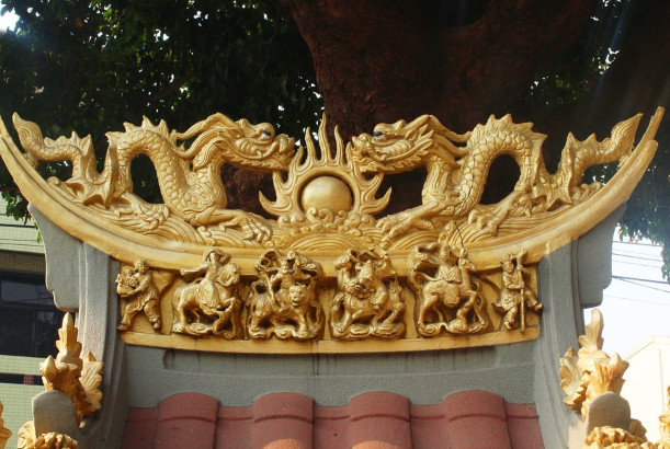 說著,楊復就開始投擲杯珓。不料,他一下子將杯珓扔到了房梁上。楊復仰頭看著高高的房梁,望而興嘆,這怎麼拿下來呢!楊復就在神像的背上用白土寫了幾個字:「發配到武陵驛站充當驛卒。」