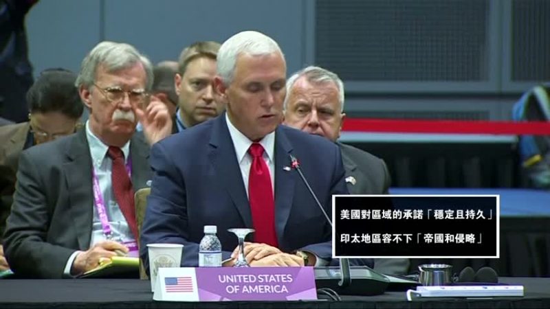 美國副總統彭斯(Mike Pence)這次代表美國總統川普出席「東協峰會」。彭斯強調:美國對區域的承諾「穩定且持久」,印太地區容不下「帝國和侵略」。外界認為,這是暗批中共在南海的影響力和軍事擴張行動。