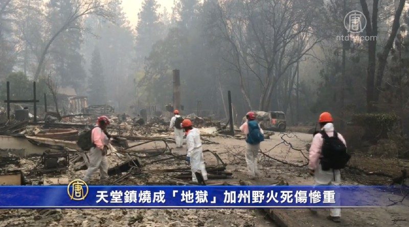 位於舊金山東北部180英里的天堂鎮,擁有2萬7千名居民,「坎普野火」過後,風光秀美的天堂鎮變成了人間地獄,除了黑色灰燼,再看不到其它顏色。