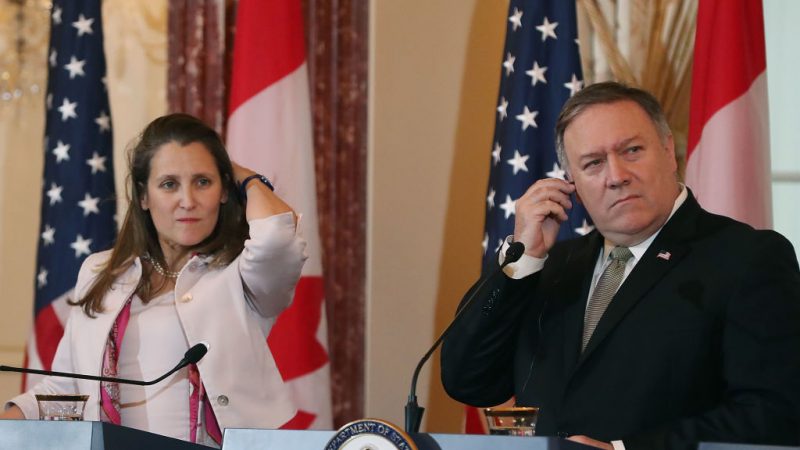 美國國務卿蓬佩奧否定加拿大捲入貿易戰,稱美方要求逮捕孟晚舟,並無政治動機。他並譴責中共拘押兩名加拿大公民。