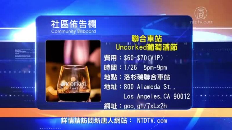 第四屆Uncorked葡萄酒節(LA Wine Festival),將於1月26日在聯合車站(Union Station)又一次隆重舉行。這不只是簡單的品嚐活動,而是給真正葡萄酒愛好者的一次完整體驗。現場有200多種來自全球各地的葡萄酒及香檳酒,還有美食餐車、現場音樂等。