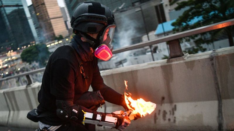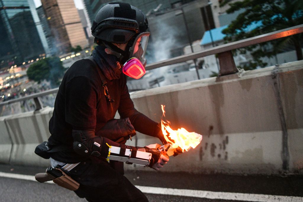 據臉書粉專「龍獅報」爆料,一張由《法新社》記者華萊士(Anthony Wallace)拍攝的照片顯示,一名全身著黑衣、手握汽油彈正準備扔出去的「示威者」,在腰間暴露出疑似藏有一把「Glock 19」的半自動手槍。