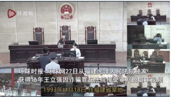 11月27日,中共黨媒《環球時報》聲稱從福建省南平市光澤縣法院獨家獲得一份2016年「王立強」受審的庭審視頻。