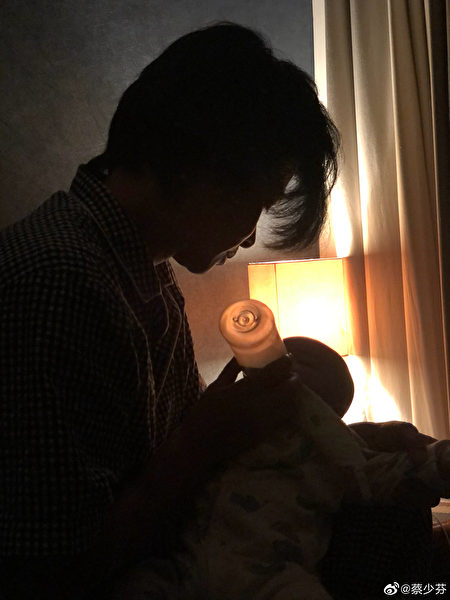 【新!唐!人:北京時間2020年03月07日訊】常秀夫妻恩愛的港星蔡少芬,3月6日凌晨在微博晒出丈夫張晉給兒子餵奶的照片,並俏皮配文「上夜班」。照片中,張晉穿著睡衣、手拿奶瓶給剛滿百日的兒子餵奶,柔和的燈光下,畫面靜謐溫馨。