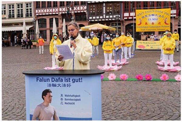 當米樂娜·貝羅巴赫(Milena Blombach)聽說法蘭克福的法輪功學員在5月9日舉行慶祝大法日的活動被批准下來後,非常高興,馬上決定要來參加。她覺得特別是在中共病毒(武漢肺炎)危害全球之際,要讓更多的人知道中共迫害法輪功的慘烈及其邪惡的本性。