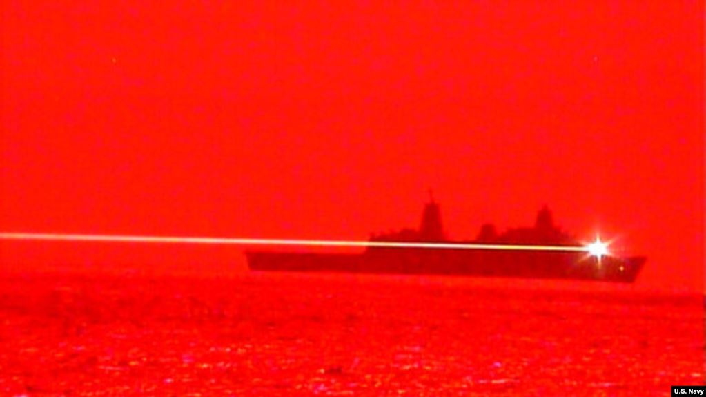 美軍太平洋艦隊22日宣布說,太平洋艦隊兩棲運輸船塢艦「波特蘭」號(USS Portland -LPD 27)5月16日利用艦載固態激光武器(Solid State Laser)成功擊毀一架無人駕駛飛行器。