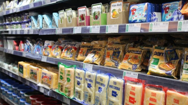 還有一層則擺滿了不易腐爛的調味品,如番茄泥、花生醬及薩爾薩醬。而在成堆的廁紙、可可粉及蜜餞等烘焙用品旁,擺放著一箱箱薯片、麥片及爆米花。