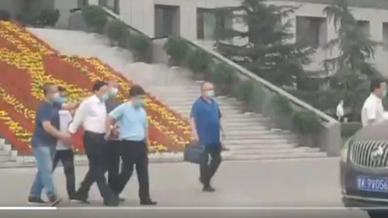 有網友7月24日在推特轉發的視頻顯示,一位高官模樣的人被多人押著從政府大樓帶走,上了停在外邊的車,視頻中人員都戴了口罩,疑似在這次疫情期間被抓。網友貼文稱,山西又給帶走一位!