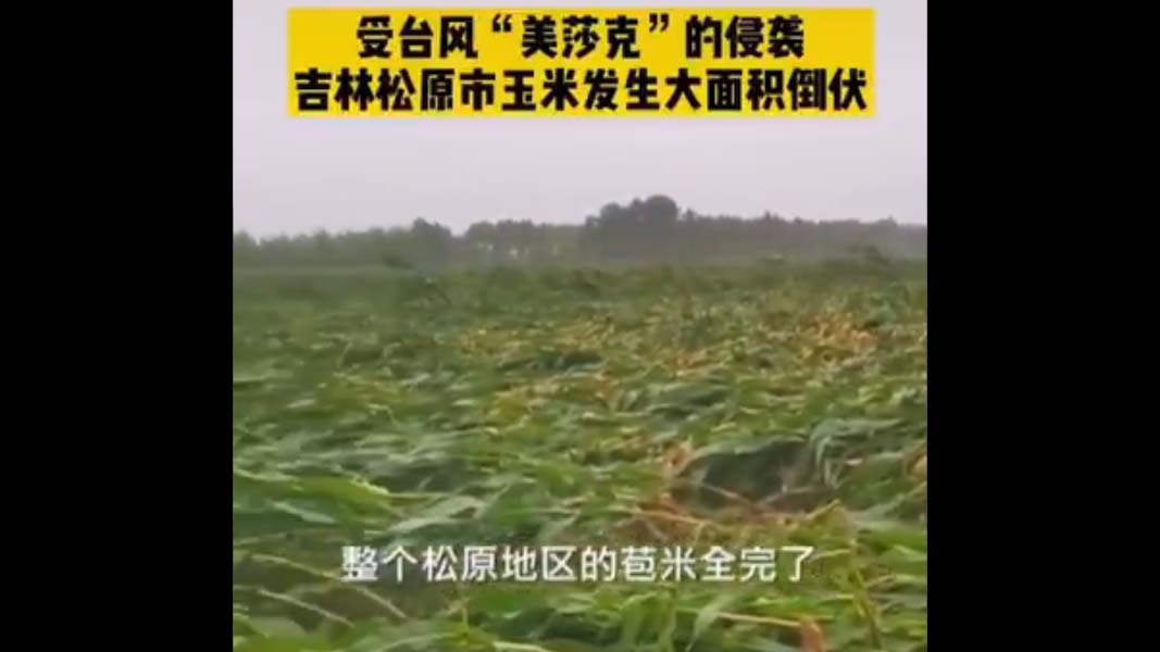 颱風過境吉林後,又北上侵襲黑龍江。社交媒體流傳多個視頻顯示,吉林和黑龍江部份地區的玉米田出現大面積倒伏。目前玉米已經出穗,正處在成熟關鍵期,這次颱風勢必造成當地玉米大面積減產。