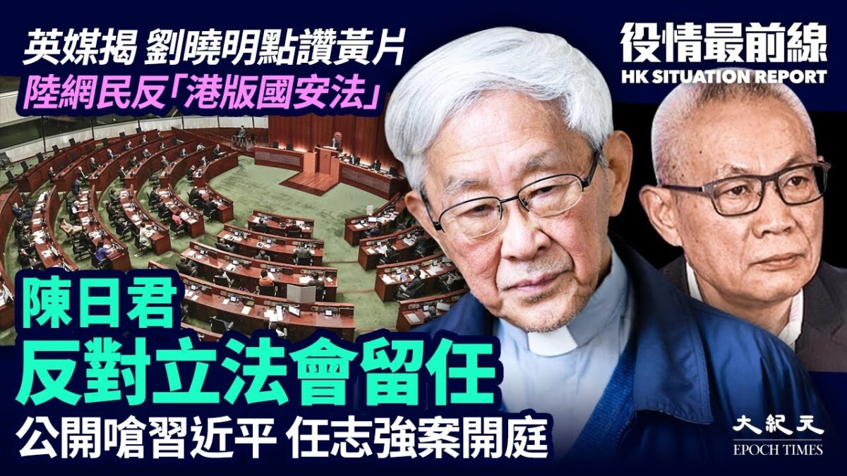 【新!唐!人:北京時間2020年09月11日訊】港警「毒品調查科」拘捕15人,稱涉操縱壹傳媒股價案;警方半年限聚令罰款收入近400萬;天主教香港教區榮休樞機陳日君反對民主派接受委任,憂「國安法」下天主教學校或被逼改名;傳懲教署女囚拒檢測遭單獨囚禁;戰狼變色狼?劉曉明點讚色情片,英媒指很丟臉;紅二代任志強11日出庭受審;內蒙古電視臺女主持人也反了;大陸網民反「港版國安法」,評分只給一星;人權團體籲抵制北京冬奧會。