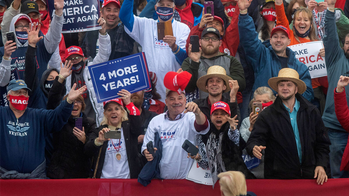 【新!唐!人:北京時間2020年10月27日訊】週一(26日)早上,川普(特朗普)在賓夕法尼亞州阿倫敦市(Allentown)舉行競選集會,其支持者唱起了新頌歌:「上帝保佑川普!」