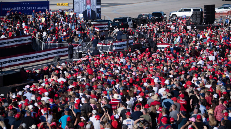 【新!唐!人:北京時間2020年10月29日訊】週三(28日),亞利桑那州異常熱鬧,川普(特朗普)總統和民主黨副總統候選人賀錦麗(Kamala Harris)同日舉行競選集會。不過兩場集會境況迥異,川普集會吸引了數千人參加,而賀錦麗的與會者看上去只有數十人。