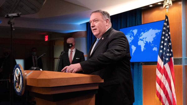 在此敏感時刻,中共外交部發出聲明,宣布對川普政府28名成員進行制裁,包括蓬佩奧(Mike Pompeo)、白宮貿易顧問納瓦羅(Peter Navarro)、國家安全顧問奧布萊恩(Robert O』Brien)、助理國務卿史達偉(David Stilwell)、及前國家安全顧問博爾頓(John Bolton)、前白宮戰略顧問班農(Stephen Bannon)等。