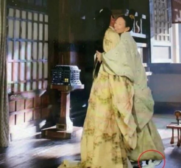 許多網友紛紛狂酸:「這也太明顯了……導演看不著?」,還有酸民忍不住吐槽:「是置入行銷嗎?」、「這是有廣告合作?帶貨?」也有部分粉絲出面緩頰,認為拍戲穿運動鞋挺方便的,「可能沒想到導演會拍全身」、「忘了換吧」。穿幫片段火速在網上瘋傳,還登上微博熱搜。