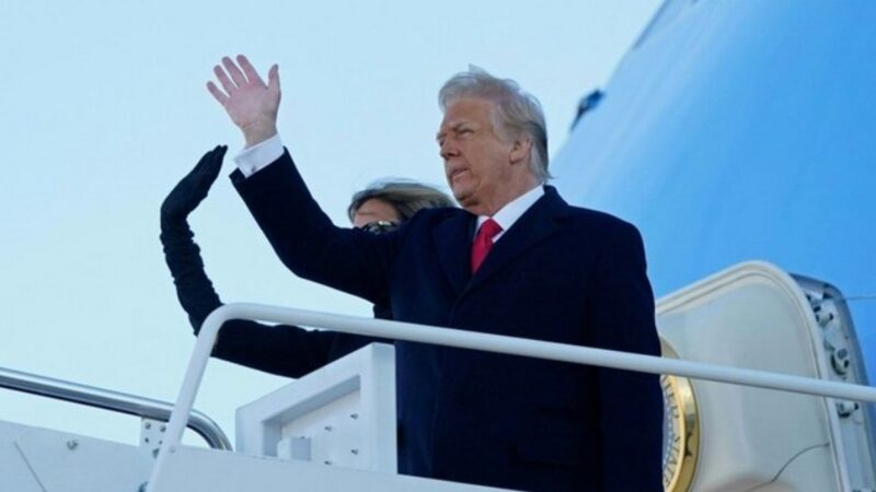 拜登呢順利的宣誓就職,川普呢給拜登留下一封信,川普給拜登留下了一封信。但是在官面,官場上沒有做任何交接,離開了白宮回到了自己的家,這個佛羅里達的海湖莊園,時間上他們安排得非常的緊湊。在拜登宣誓就職成為美國總統之前,美國的空軍一號,也就是美國總統的專機,已經回到了安德魯空軍基地。也就是說回到了總統使用飛機的飛機的庫房,包括總統的專車也同時離開了,也同時離開了海湖莊園,這樣的話在禮儀上沒有任何重疊,沒有任何重疊。