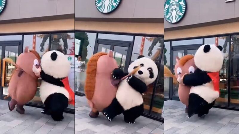 【新!唐!人:北京時間2021年05月11日訊】日前,江蘇宜興一個商場前,兩位扮演卡通玩偶的工作人員疑似發生爭執,並爆發肢體衝突。由於沒來得及脫下工作服,這一場鬥毆變得極具喜感,引發網友笑翻。