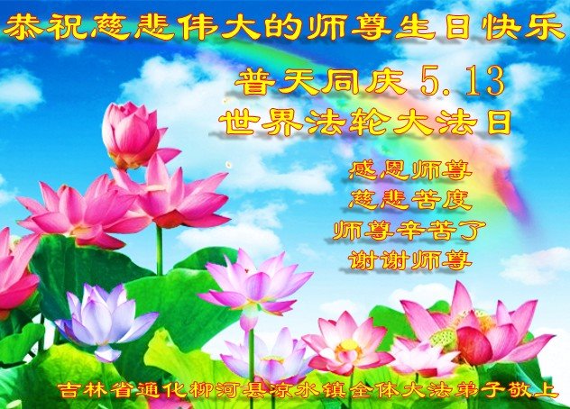 吉林省通化柳河縣涼水鎮全體大法弟子恭祝師尊生日快樂!同慶世界法輪大法日!