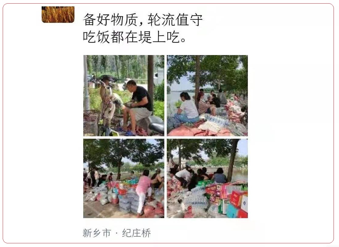 他還說,鄭州借著大暴雨泄洪,很多人開始還不知道。其它地方包括新鄉、鶴壁等地的民眾對政府就早有警惕,防備他們半夜乘著人們熟睡的時候偷偷決堤,因而輪流值守,吃住在堤壩上。