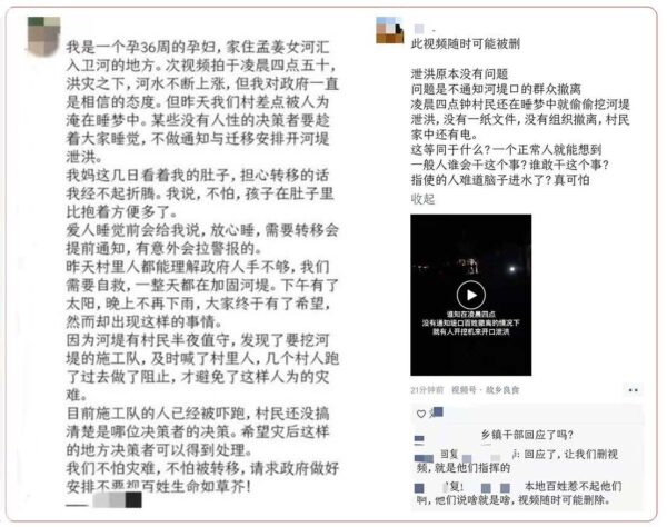 微博上還有其他村民發布視頻指控政府凌晨4點偷挖河堤,事後鄉鎮官員要求村民刪視頻,這就顯示出他們也參與了指揮。不知上述兩起爆料是否是同一事件。