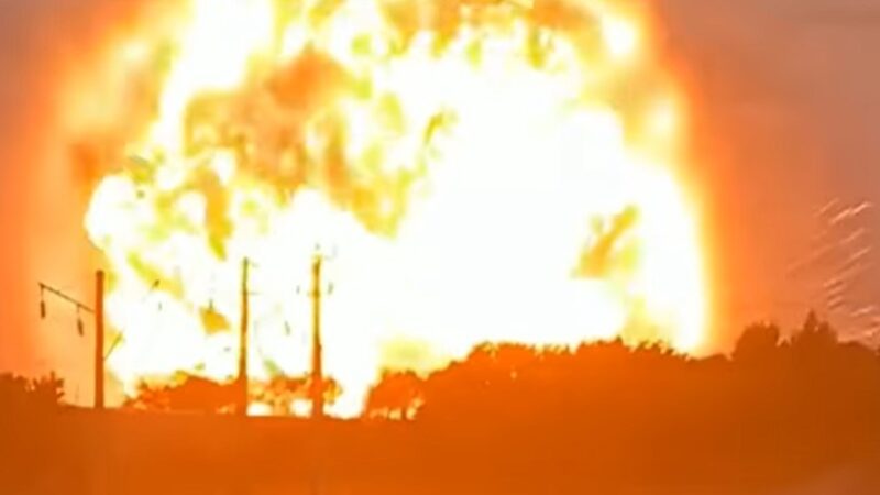 從視頻中可見,失火地點濃煙竄起,營地中的士兵紛紛快跑逃出,爆炸隨即發生,巨大「蕈狀火球」瞬間震撼整個地區。