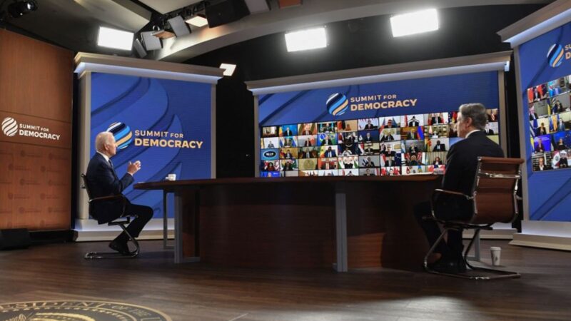 12月9日,在美國召集的首屆「民主峰會」上,拜登表示,在威權主義抬頭的情況下,全球民主及人權面臨「決定性挑戰」。