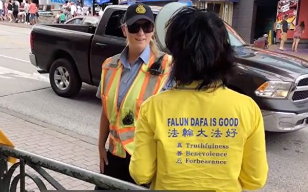 學員們給警察看他們在真相點上拍攝並製作的視頻《尼亞加拉瀑布真相點》(見文末視頻),它紀錄了他們講真相的祥和情景和遊人們的積極反饋。這個視頻放在社交媒體上,當時點擊量已突破六百萬。