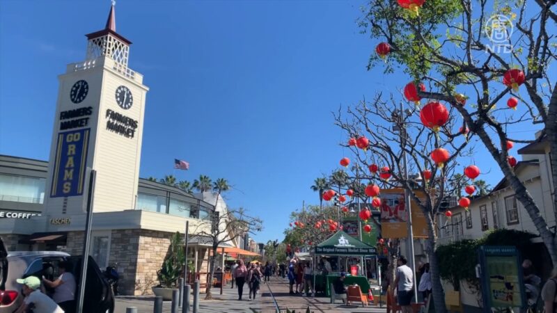 【新!唐!人:北京時間2022年02月24日訊】隨著中國新年的喜氣洋洋,南加各處可以看到充滿年味的裝飾。洛杉磯農夫市場的地上,展出了一幅以粉筆繪製的畫作,讓遊客感受虎年的氛圍。
