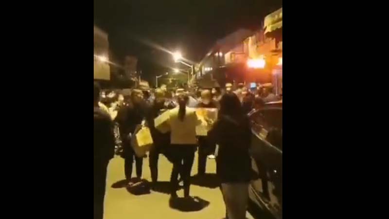 4月8日,網上傳出一段視頻(鏈接)顯示,在一個街道上,夜晚發生騷亂,有女性發出尖叫,多名男女懷抱物資離開。現場還有大量市民圍觀。