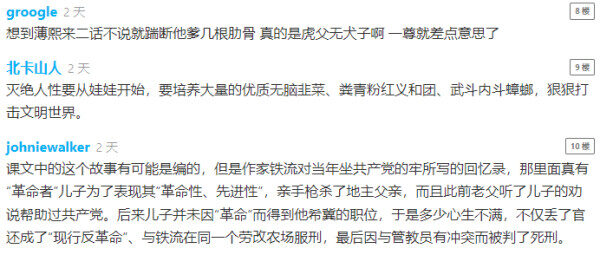 「這個語文材料的目的是把小學生培養成爺爺那樣冷酷無情。為達到目的不擇手段。 但是結局就是,人人最後都發現,自己在這出戲裡面扮演的不是爺爺,而是那個奶奶。 每個人都是以害人者開始,以受害者結束。」
