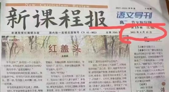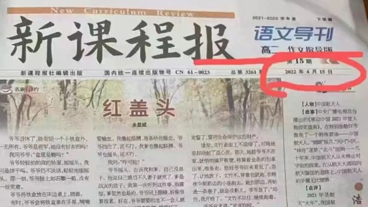 這份報紙出版日期是「2022年4月15日」。也就是說,就在當下,中共正在利用教育的渠道,向心智尚未完全成熟的學生灌輸中共的「黨性」。