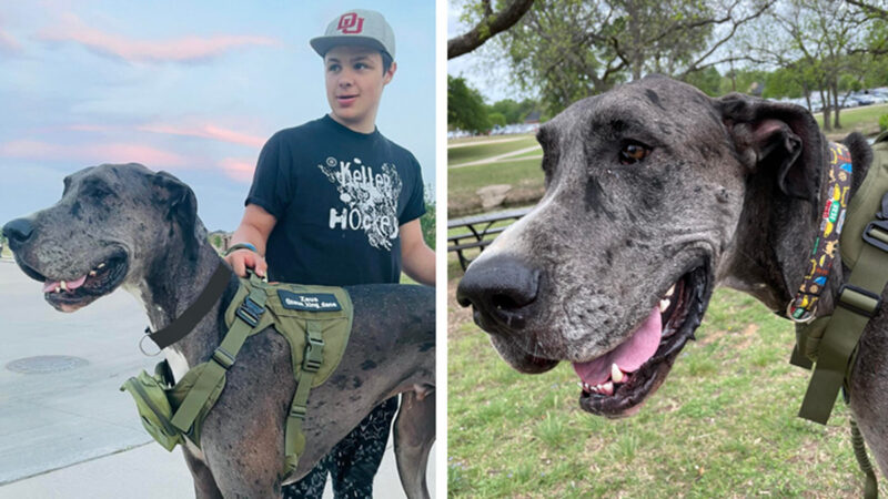 【新!唐!人:北京時間2022年06月03日訊】美國德州一隻超巨大的大丹犬(Great Dane)最近獲得吉尼斯世界紀錄認證為全球現存最高的狗狗,從腳到肩的高度達1.046米,相當於半個成年人那麼高。