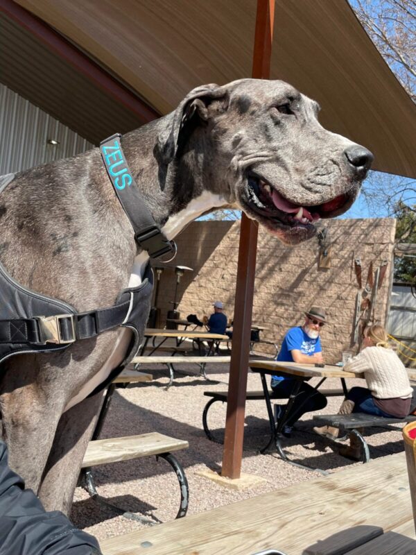 這隻灰棕色的大丹犬歸布列塔尼‧戴維斯(Brittany Davis)和她的家人所有。戴維斯形容宙斯「非常悠閒」「喜歡每個人」,但它也「非常固執」並且「只會去做它自己想做的事情。」
