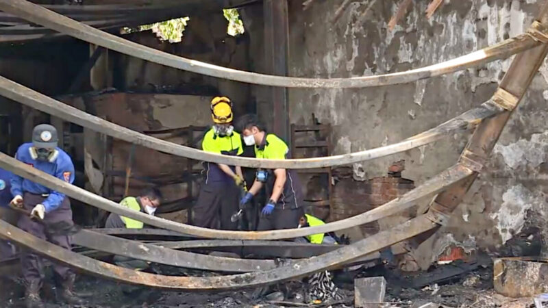 新竹市消防局第一大隊大隊長張智智:「它一、二樓的部分除了鋼梁以外,它是用易燃材質裝潢,那因為火勢全面燃燒溫度很高,它把二樓的樓地板燒穿之後,那人員總共8個罹難者,從二樓燒穿之後,應該是研判掉到一樓這邊相對位置。」