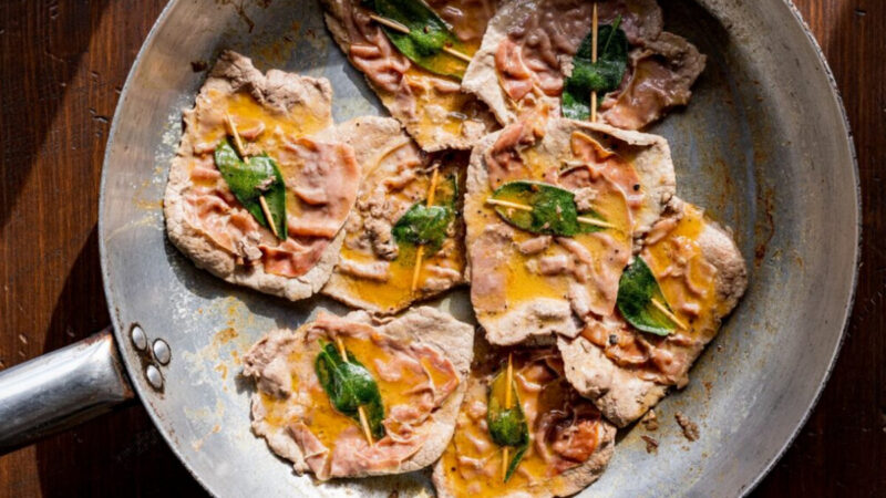 小牛肉片、 意大利熏火腿和鼠尾草組成的簡單菜餚,是來自意大利布雷西亞,但現在已成為許多羅馬飲食店菜單上的必備美食,也是家庭輕鬆烹飪的主食。這就是為什麼我覺得它是一個天才食譜。