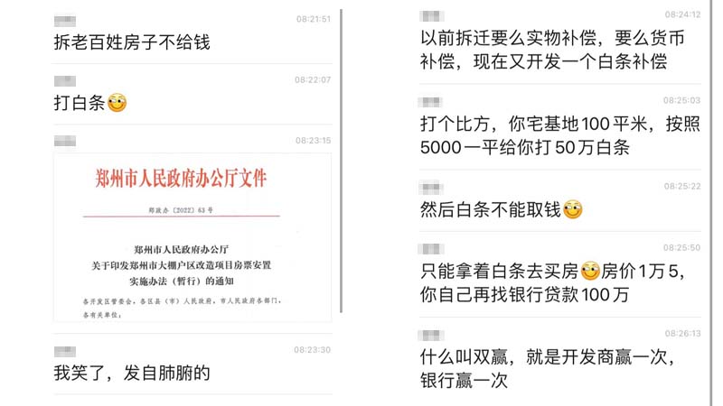 當局強拆舊房賣新房,被指「變相增加市場需求」。網民還質疑,實際上當地新房的價格可能遠遠高於舊房拆遷獲得的補償價格,拆遷戶拿不到補償金,只能用房票再去買房,還要付出巨額差價。