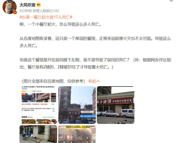 大火消息,一度還在新浪微博熱搜上,但很快被降下去了。有網民批評,「傷亡這麼重,熱搜竟然沒有。」「剛才看在十幾,現在直接沒了。」「長春壓消息一真厲害了,之前影樓著火也是不了了之。」「到底是誰在壓熱搜?」