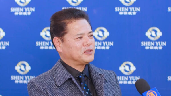 通信設備公司社長森晃一:「女子古典舞是很多演員一起表演的節目,太有趣了,非常了得的技巧,大家的動作如出一轍,這要經過多少的訓練啊!我是第一次觀賞古典舞,古典舞太棒了。」