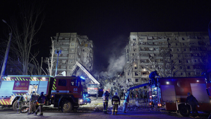 這裡是烏克蘭的第聶伯羅市,這棟九層樓的建築在週六(1月14日)遭到俄軍轟炸,濃霧沖天,變為一片廢墟。