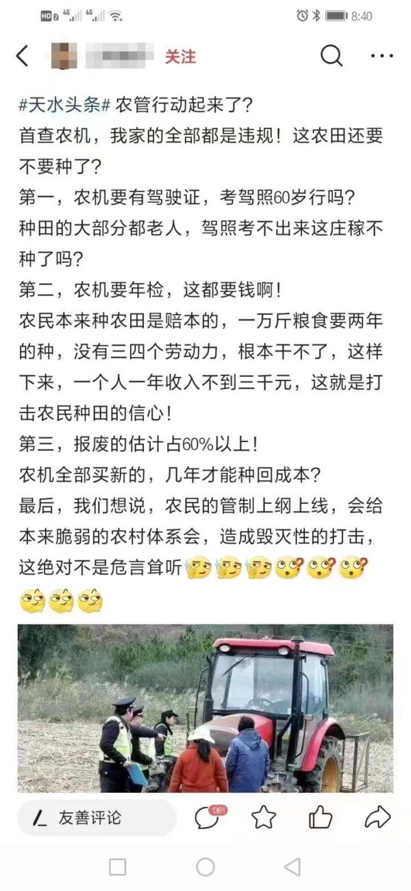 除此之外,還有地方的「農管」要求農民種地必須先考「農民証」,農用車必須「合規」,駕駛農機必須要有「駕駛證」等等。