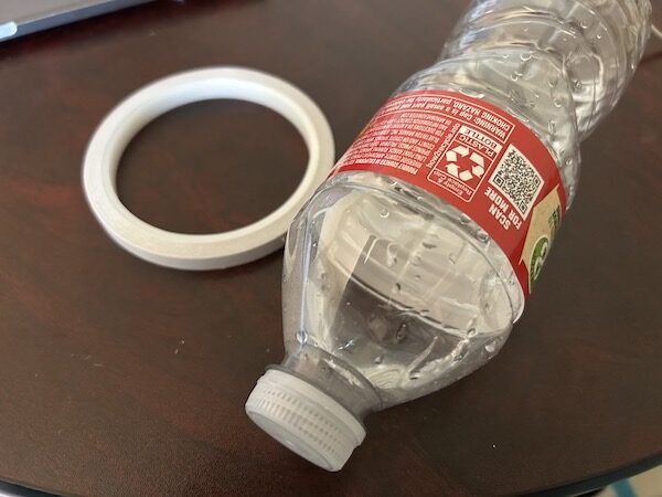 準備材料:一卷雙面膠、空的礦泉水瓶、吹風機、剪刀、細線繩