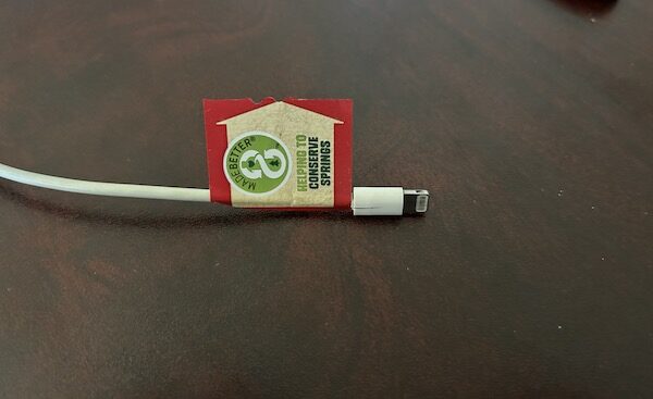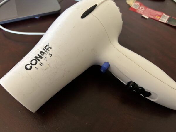 7.把吹風機開到最熱的檔,吹一吹,塑料標籤受熱後就會收縮,完美的貼合在充電線上。