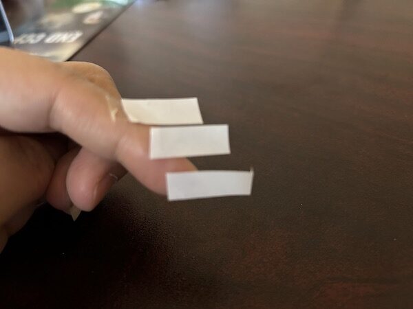 1.用剪刀將雙面膠,剪成三小段。