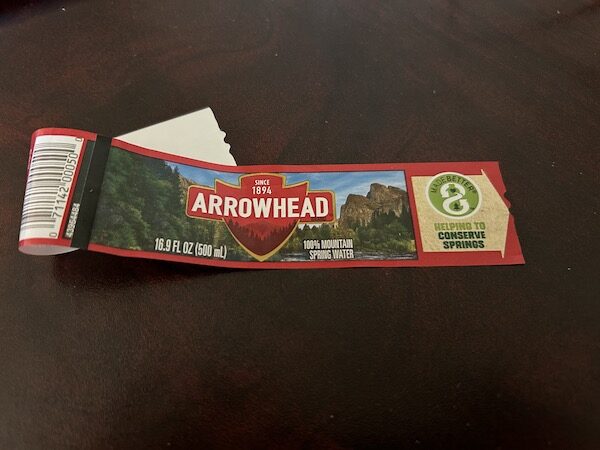 3.將用過的礦泉水瓶上的塑料標籤撕下來。